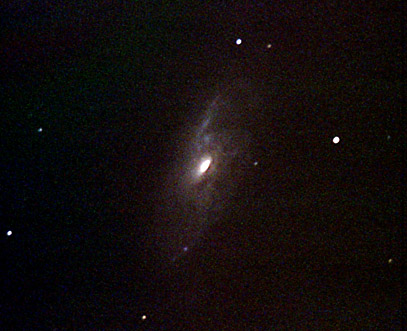Target: M106, galaxy Date: 26.4.2004 Time: - Location: Vantaa, Finland Conditions: - Telescope: N150 f5 (GSO) Mount: GEM w RA stepper motor (Sky-View) Camera: SC2 webcam (PCVC840K).