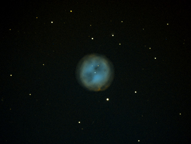 Also known as the Owl nebulaDate: 2.5.2004 Time: - Location: Vantaa, Finland Conditions: Naked eye limit magnitude ~3.5. Telescope: N150 f5 (GSO) Mount: GEM w RA stepper motor (Sky-View) Camera: SC2 webcam (PCVC840K).